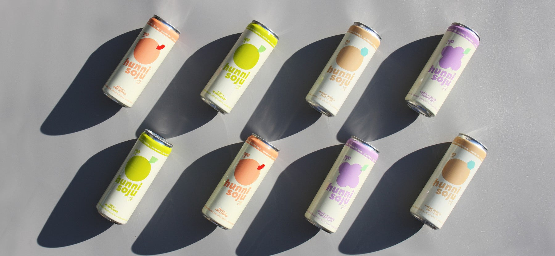 Hunni Sparkling Soju is a ready-to drink line of canned sparkling soju cocktails at 4.0% ABV ranging from 90-100 calories per 12 oz. can. Light, refreshing, and bubbly, Hunni Sparkling Soju cocktails are made with real fruit juice and natural flavors mixed with our premium gluten-free soju.